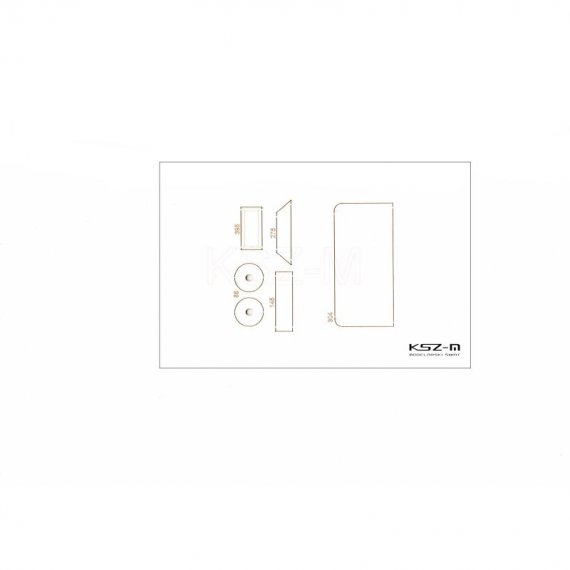 Laserowo wycięte elementy modelu, które w oryginalnej wycinance wymagają podklejenia odpowiedniej grubości tekturą. Elementy te są precyzyjnie wycinane ploterem laserowym od razu w tekturze o właściwej grubości i wymagają jedynie wypchnięcia palcem z arkusza (połączone są tylko małymi łącznikami).