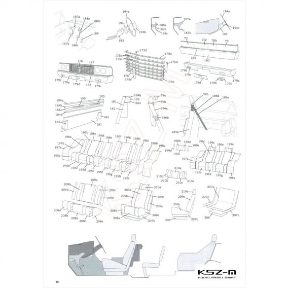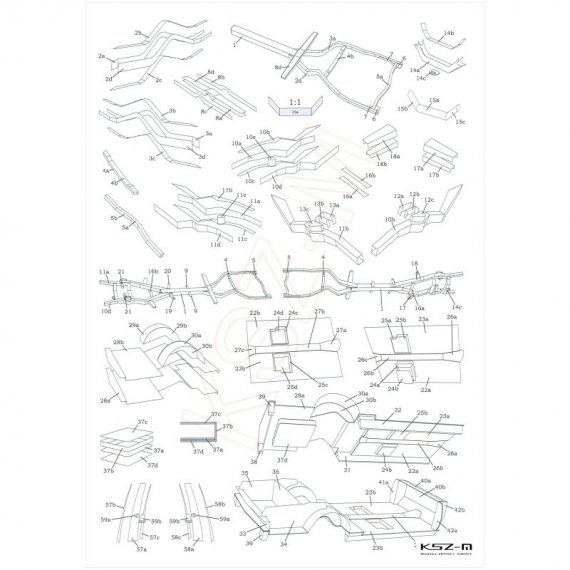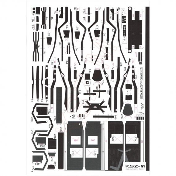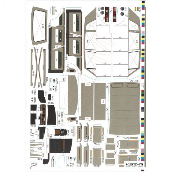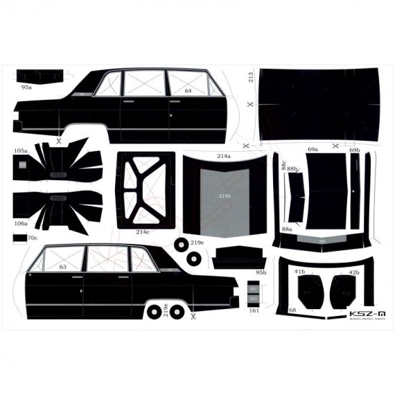 - 10 arkuszy z częściami do wycinania - w tym 1arkusz papieru kredowego - możliwość sklejenia karoserii w offsecie (kolor biały) lub kredzie (kolor czarny)