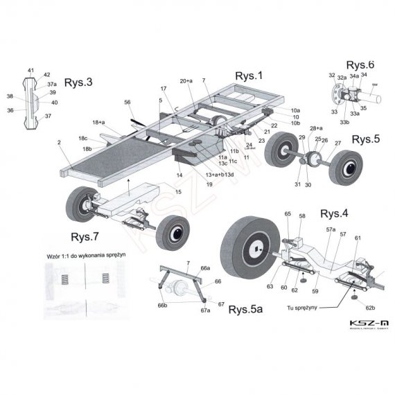 - szkielet, detale, bieżniki wycinane laserowo
