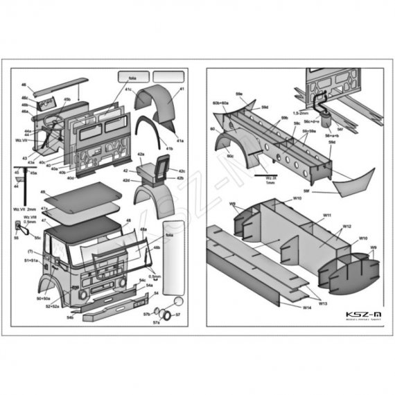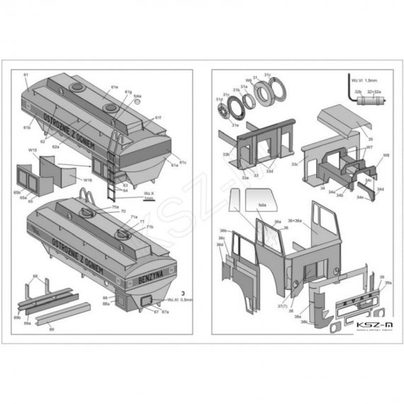 - 13 arkuszy A4 z częściami do wycinania