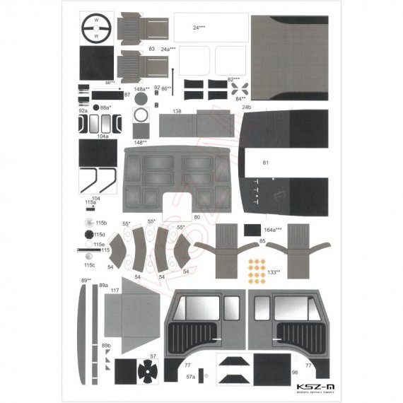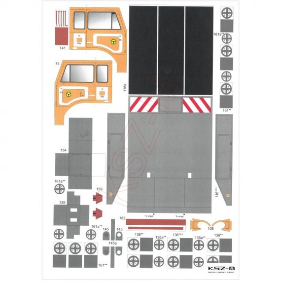 - zestaw wycinany laserowo: szkielet, detale, bieżniki