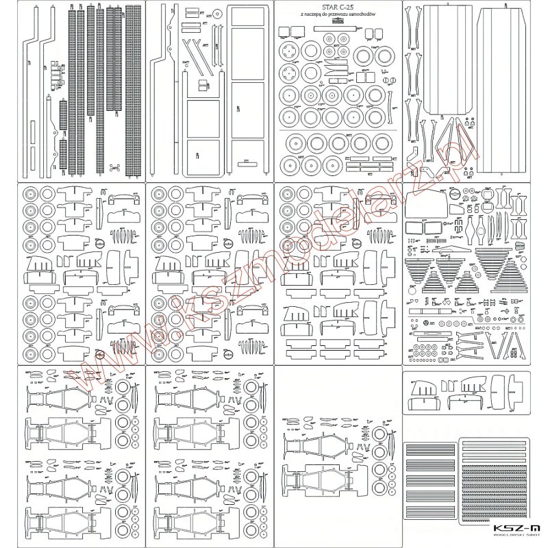 Zawartość zestawu: szkielet (wręgi), detale, bieżniki