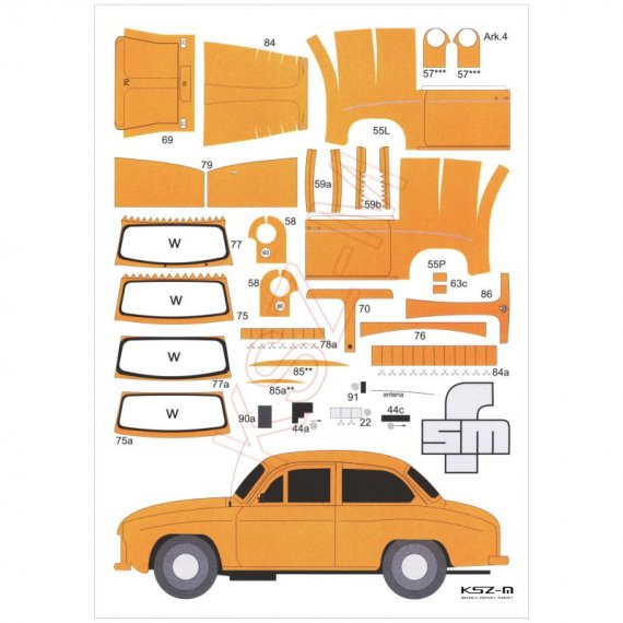 - 4,5 arkuszy A4 z częściami do wycięcia