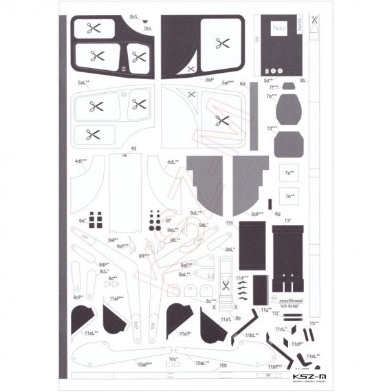 - 4 arkusza z częściami do wycinania oraz szablonami