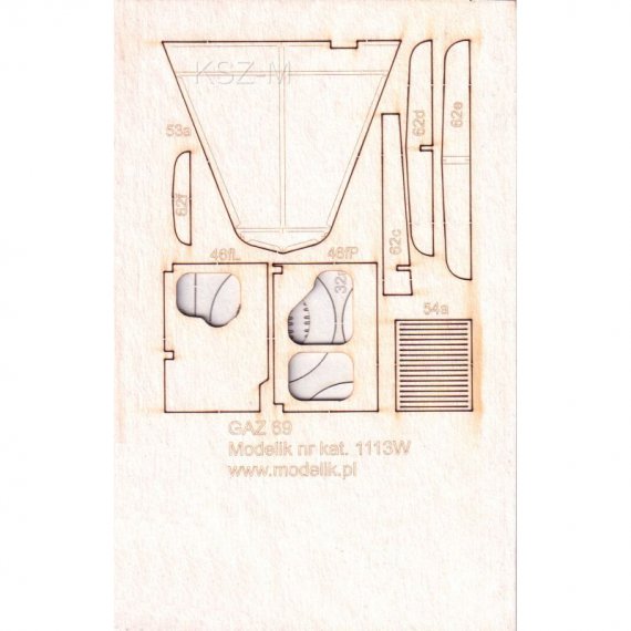 Zestaw wycinany laserowo do modelu kartonowego samochodu GAZ-69M z wydawnictwa Modelik 13/11