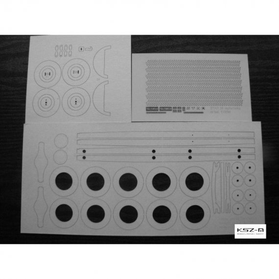Laserowo wycięte elementy modelu, które w oryginalnej wycinance wymagają podklejenia odpowiedniej grubości tekturą. Elementy te są precyzyjnie wycinane ploterem laserowym od razu w tekturze o właściwej grubości i wymagają jedynie wypchnięcia palcem z arkusza (połączone są tylko małymi łącznikami).
