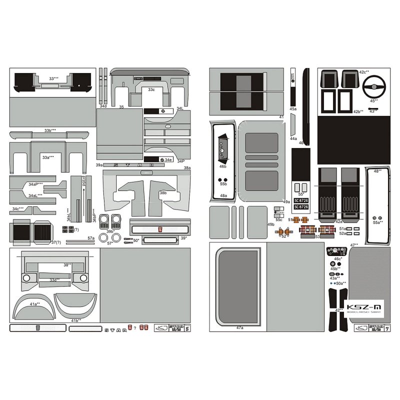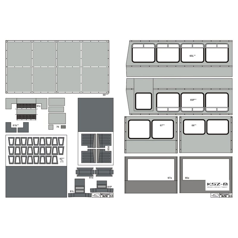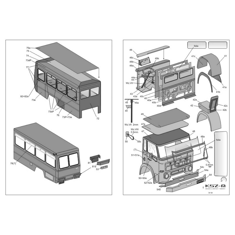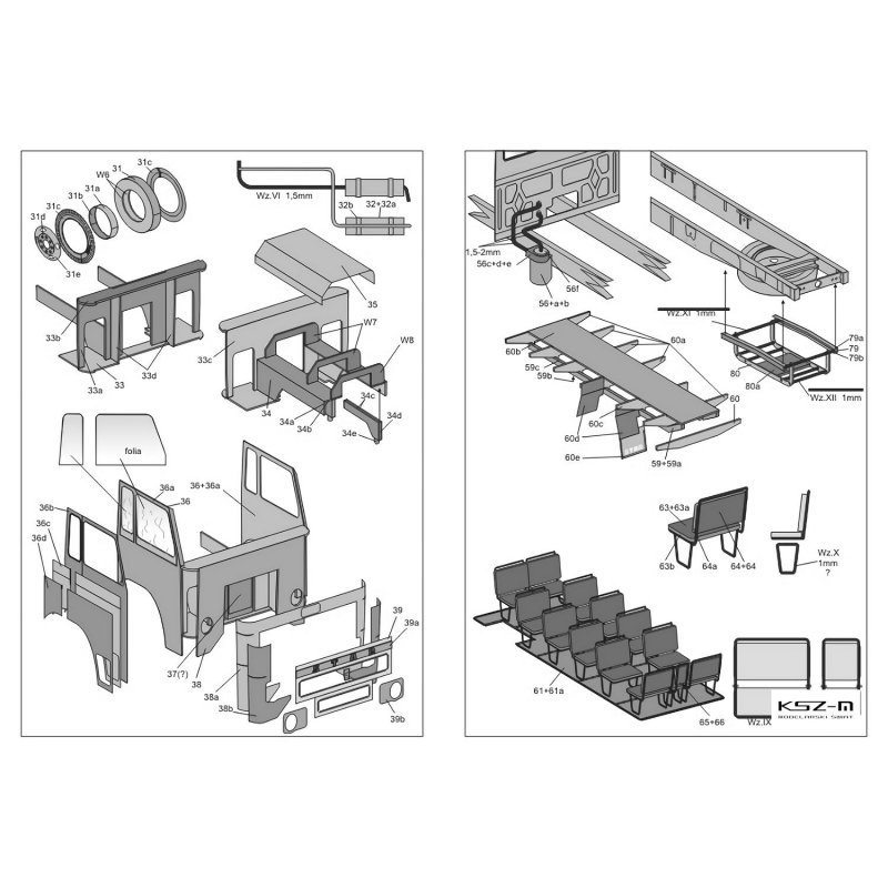 - zestaw wycinany laserowo: wręgi , detale, tabliczki grawerowane, bieżniki opon, czarne uszczelki okien