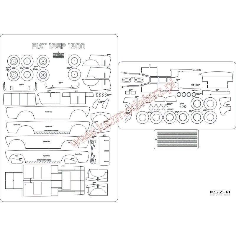 Zestaw wycięty laserowo do modelu samochodu Fiat 125p 1300 z wydawnictwa Answer 558