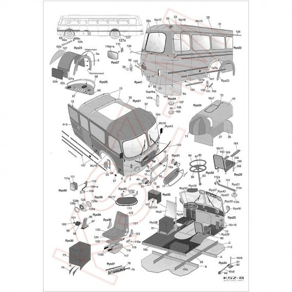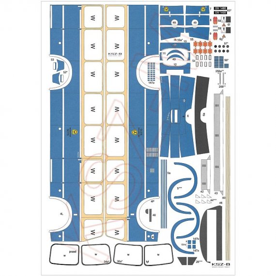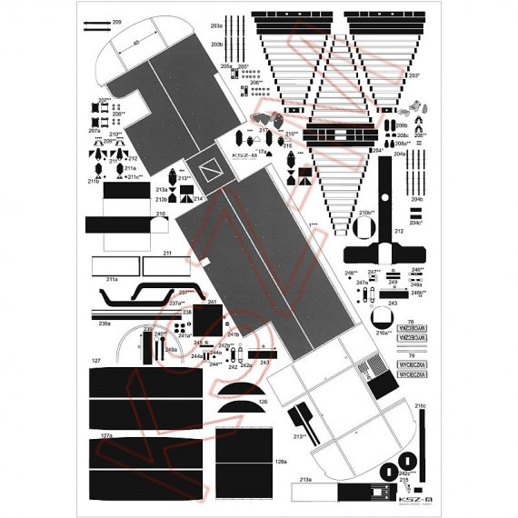 - Zestaw zawiera: arkusze z pomalowanymi częściami modelu, instrukcję montażu, szczegółowe rysunki montażowe