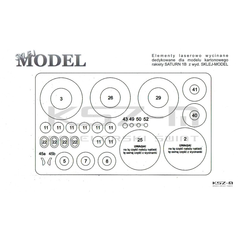 Zestaw wycięty laserowo do kartonowego modelu SATURN 1B z wydawnictwa Sklej Model 3