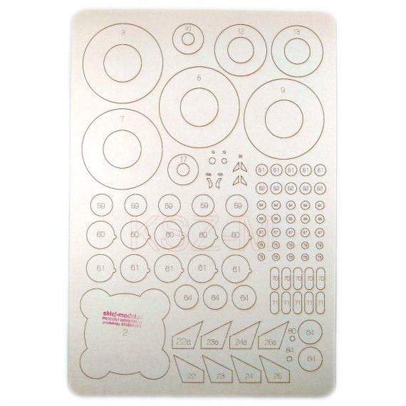 Laserowo wycięte elementy modelu, które w oryginalnej wycinance wymagają podklejenia odpowiedniej grubości tekturą. Elementy te są precyzyjnie wycinane ploterem laserowym od razu w tekturze o właściwej grubości i wymagają jedynie wypchnięcia palcem z arkusza (połączone są tylko małymi łącznikami).