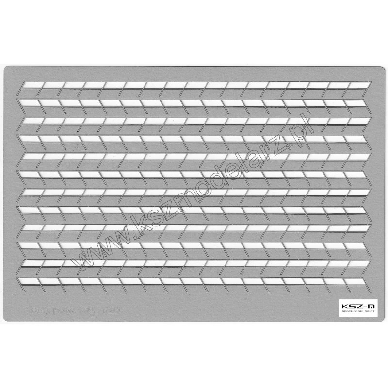Reling kartonowy wycinany laserem skośny, 30 st., 2-rzędowy w skali 1:200. Łączna długość relingu: 164 cm.
