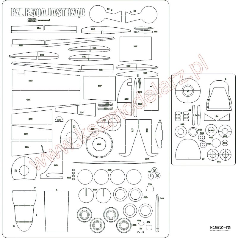 Zestaw wycięty laserowo do kartonowego modelu samolotu PZL P.50A Jastrząb z wydawnictwa MPModel 43