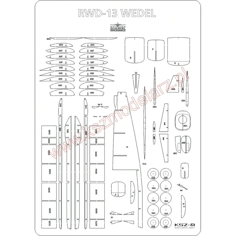 Zestaw wycięty laserowo do modelu samolotu RWD 13 "Wedel" z wydawnictwa MPModel 61