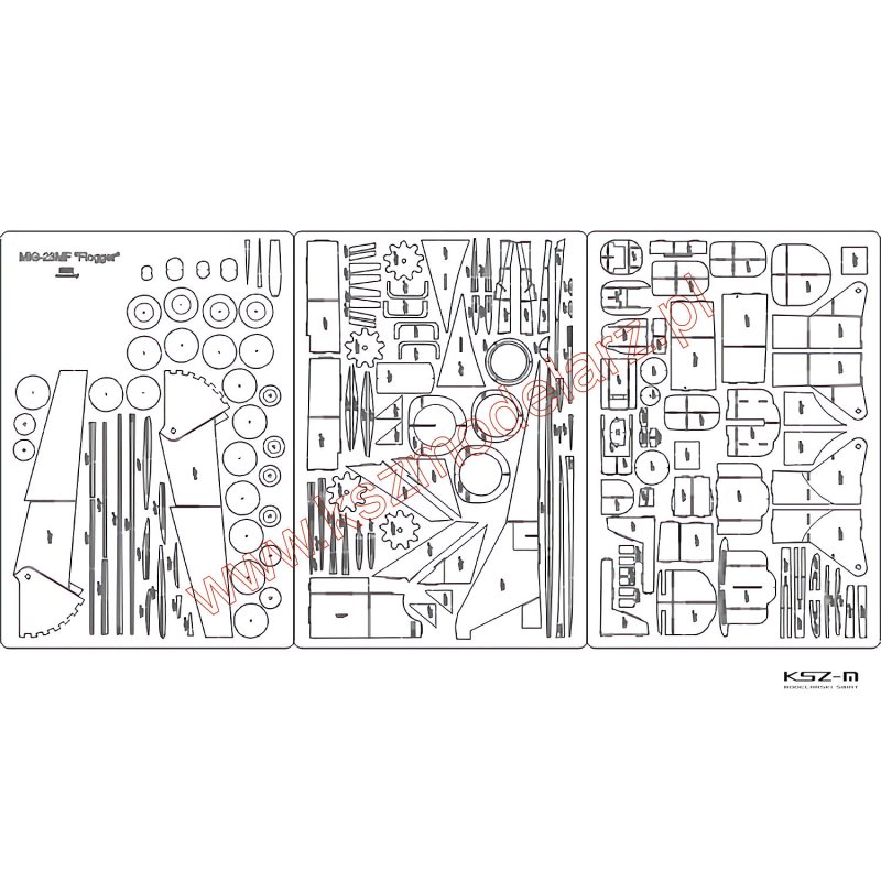 Zestaw wycięty laserowo do modelu samolotu MiG-23 MF "FLOGGER" z wydawnictwa Angraf i MS Model
