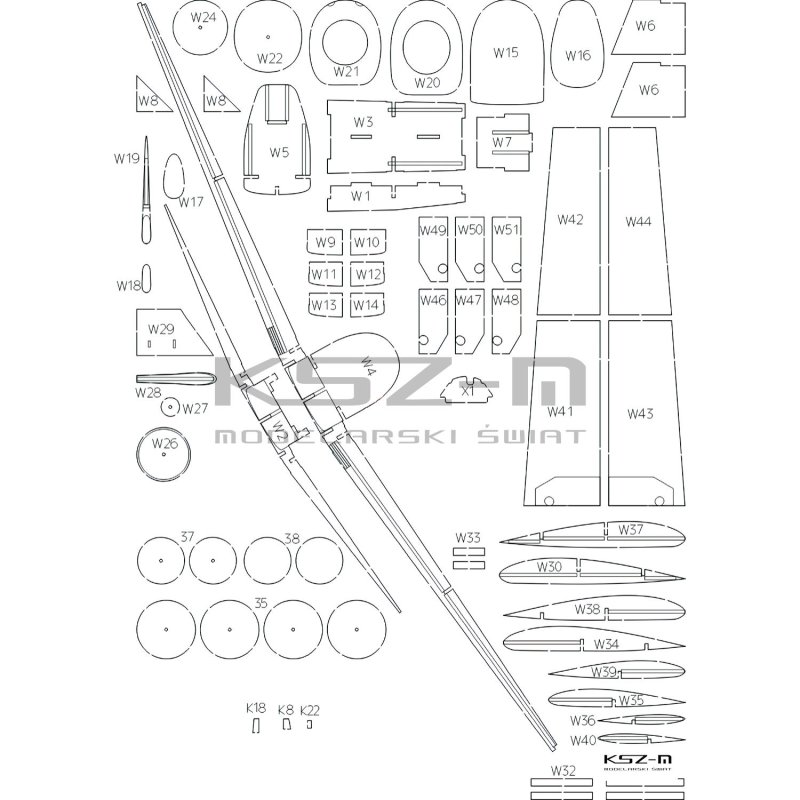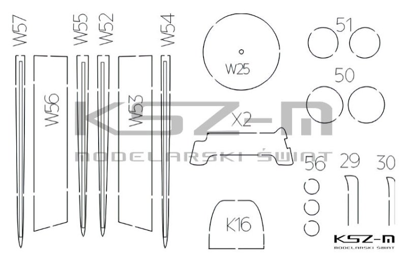 Zestaw elementów wycinanych laserowo przeznaczony do modelu kartonowego Messerschmitt Bf-109E-3 wydanego przez WAK. Elementy szkieletu zostały wykonane z dużą precyzją w technologii cięcia laserowego, co eliminuje konieczność ręcznego wycinania wręg. Zastosowanie dodatku poprawia osiowość kadłuba, ułatwia montaż poszycia oraz zwiększa sztywność całej konstrukcji. Zestaw jest w pełni kompatybilny z opracowaniem WAK i może być stosowany również przy wcześniejszych wznowieniach tego modelu. Dodatek polecany jest zarówno dla początkujących, jak i bardziej zaawansowanych modelarzy. Zestaw jest dedykowany wyłącznie do modeli z wydawnictwa WAK i nie stanowi samodzielnego produktu.