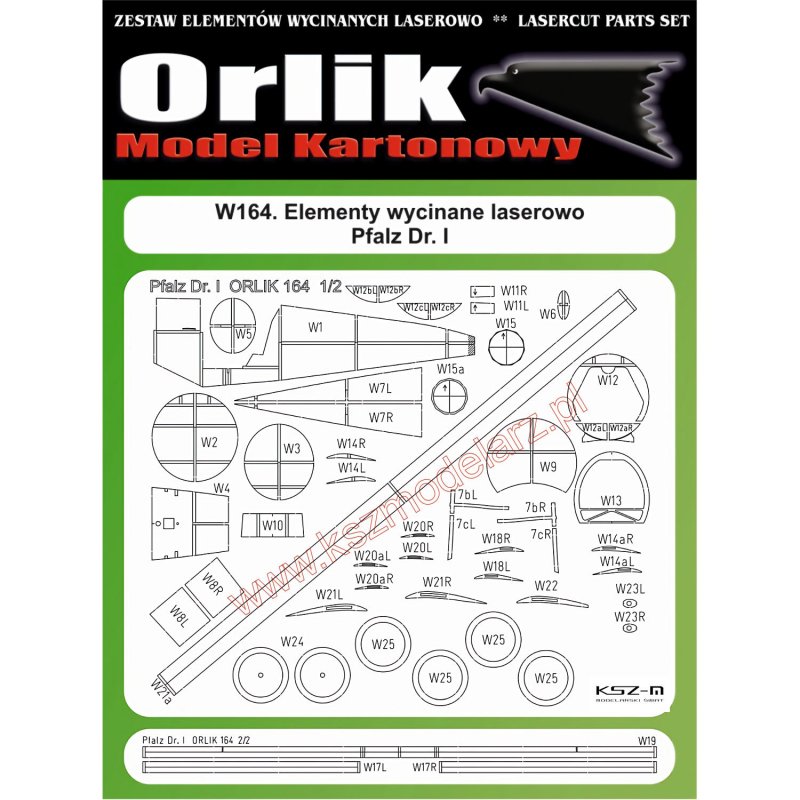 Zestaw wycięty laserowo do modelu samolotu Pfalz Dr.I z wydawnictwa Orlik 164