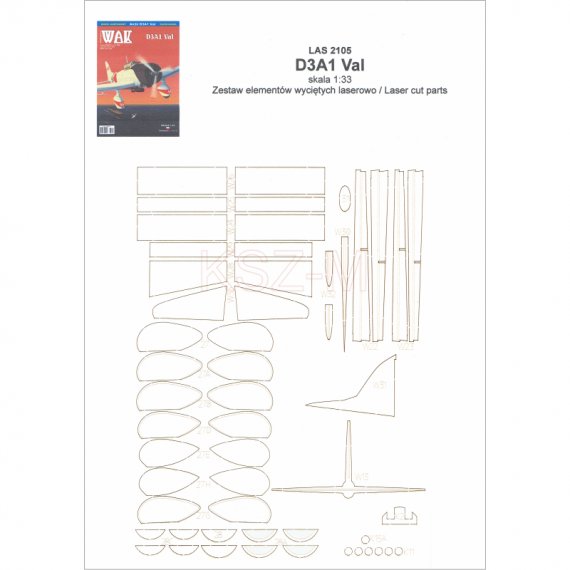Zestaw wycięty laserowo do kartonowego modelu samolotu Aichi D3A1 Val z wydawnictwa WAK 5/2021