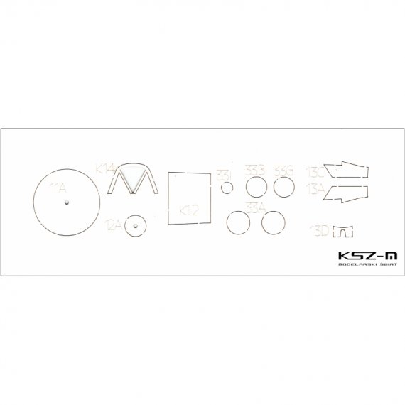 Laserowo wycięte elementy modelu, które w oryginalnej wycinance wymagają podklejenia odpowiedniej grubości tekturą. Elementy te są precyzyjnie wycinane ploterem laserowym od razu w tekturze o właściwej grubości i wymagają jedynie wypchnięcia palcem z arkusza (połączone są tylko małymi łącznikami).