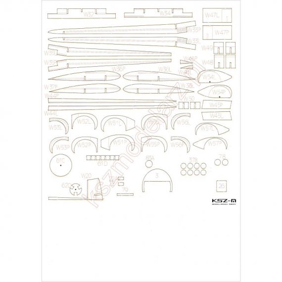 Laserowo wycięte elementy modelu, które w oryginalnej wycinance wymagają podklejenia odpowiedniej grubości tekturą. Elementy te są precyzyjnie wycinane ploterem laserowym od razu w tekturze o właściwej grubości i wymagają jedynie wypchnięcia palcem z arkusza (połączone są tylko małymi łącznikami).