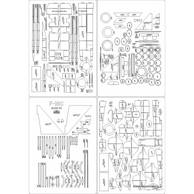Zestaw wycięty laserowo do kartonowego modelu samolotu F-16C Block 30 z wydawnictwa MS Model 016