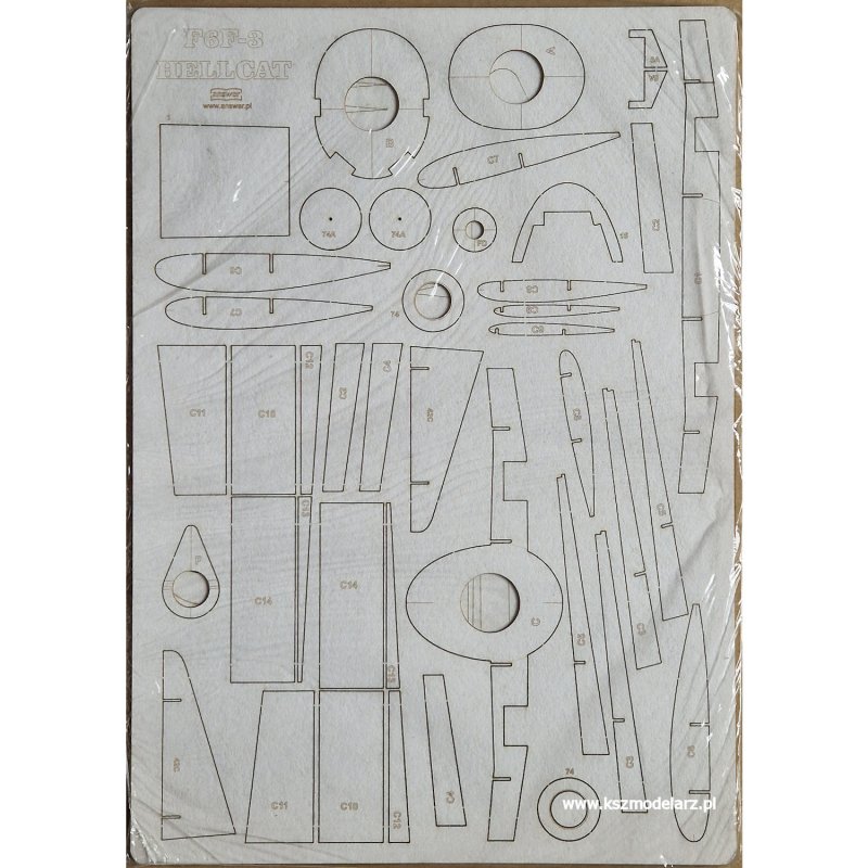 Zestaw wycięty laserowo do modelu samolotu F6F Hellcat z wydawnictwa MPModel nr 19