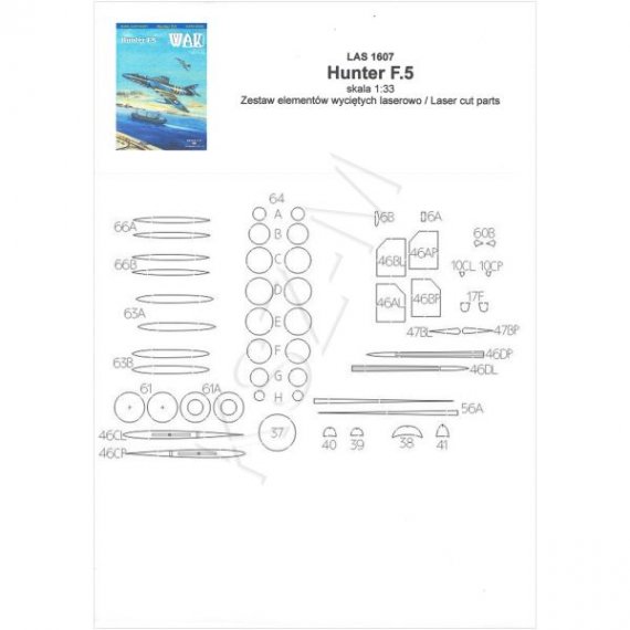 Zestaw wycięty laserowo do modelu samolotu Hunter F.5 z wydawnictwa WAK 6-7/2016