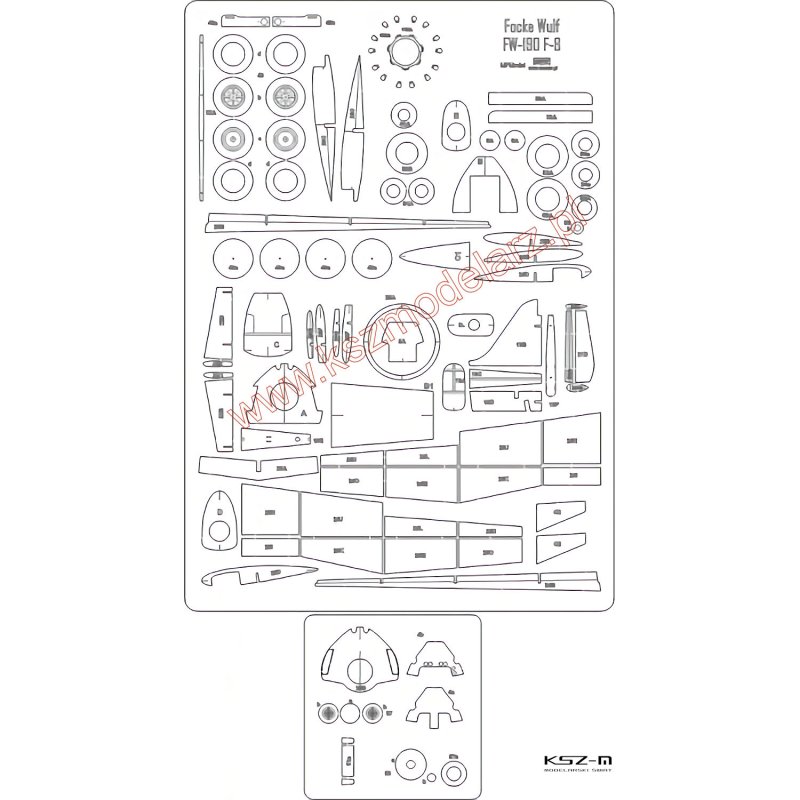 Zestaw wycięty laserowo do kartonowego modelu samolotu Focke-Wulf Fw-190 F-8 z wydawnictwa MPModel 25