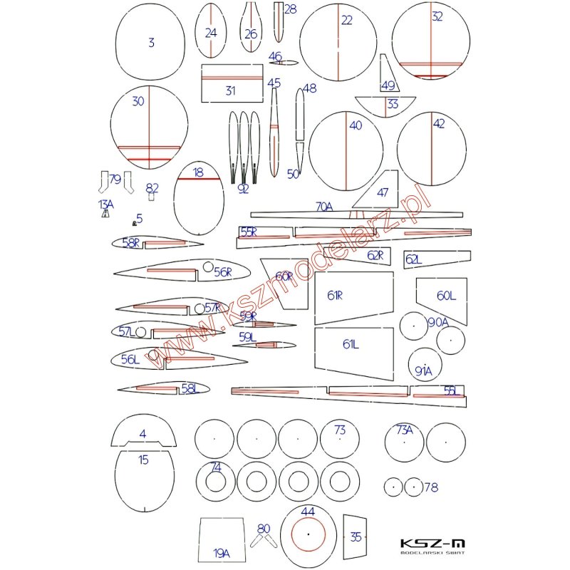 Zestaw wycięty laserowo do modelu samolotu Ławoczkin Ła-11 z wydawnictwa WAK nr 10/2024