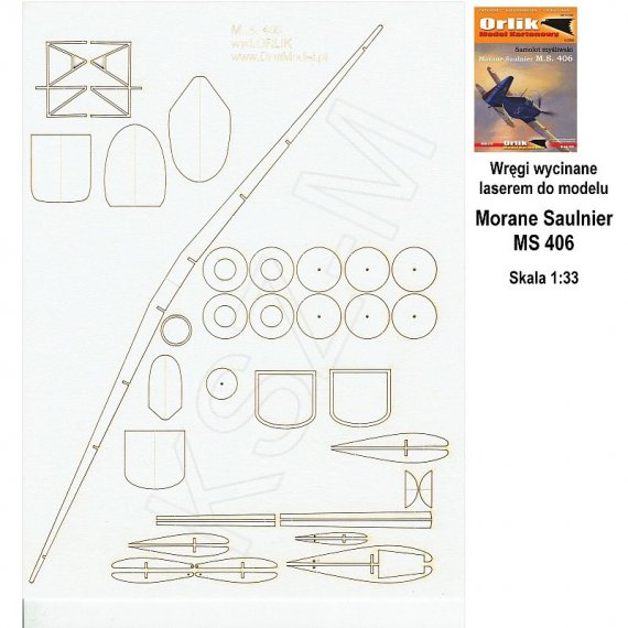 Zestaw wycięty laserowo do kartonowego modelu samolotu Morane Saulnier MS 406 z wydawnictwa Orlik 029