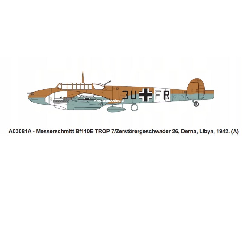 A. Messerschmitt Bf110E TROP 7/Zerstörergeschwader 26, Derna, Libya, 1942.