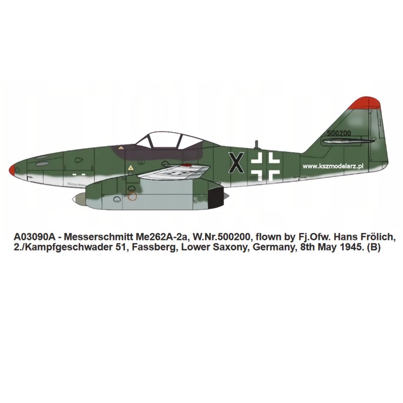 B. Messerschmitt Me262A-2a, W.Nr.500200, flown by Fj.Ofw. Hans Frölich, 2./Kampfgeschwader 51, Fassberg, Lower Saxony, Germany, 8th May 1945.