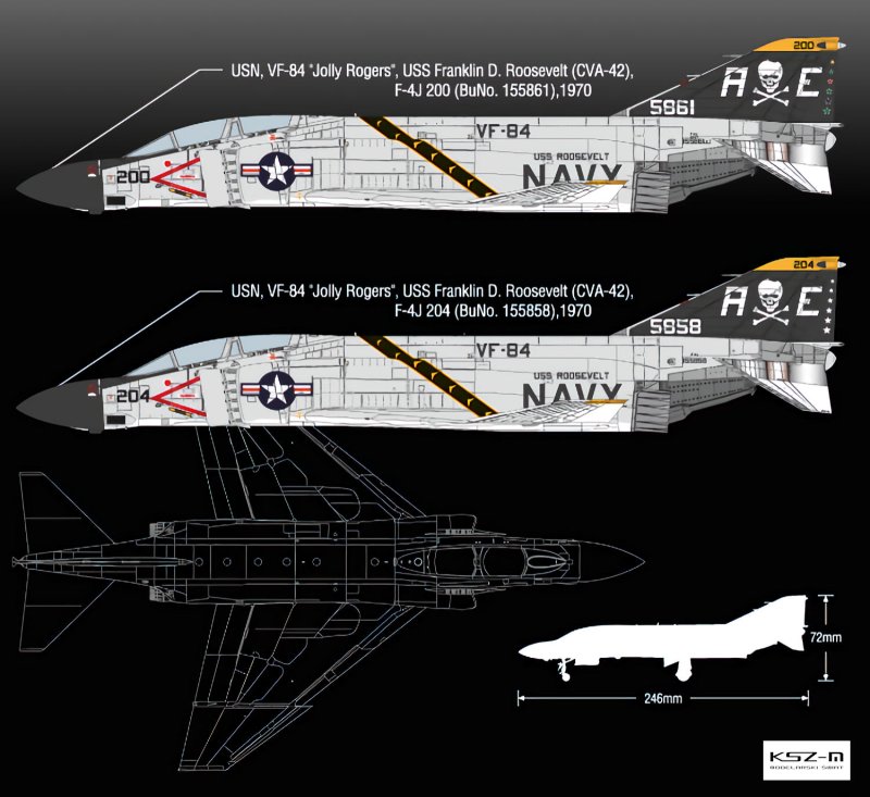 Samolot F-4J VF-84 "Jolly Rogers" był wersją myśliwca F-4 Phantom II, który służył w United States Navy. VF-84 "Jolly Rogers" była jedną z najbardziej znanych eskadr lotniczych w historii amerykańskiego lotnictwa morskiego. VF-84 używał F-4J Phantom II jako swój główny myśliwiec przechwytujący i wsparcie powietrzne. Charakterystycznym elementem samolotów VF-84 był ich malunek na stateczniku, przedstawiający czaszkę z przekrzyżowanymi kośćmi, co stało się symbolem eskadry. F-4J Phantom II VF-84 służył w czasie wojny wietnamskiej, uczestnicząc w misjach eskortowania bombowców, zwalczania celów naziemnych oraz w misjach zwalczania statków i okrętów nieprzyjaciela. Eskadra VF-84 "Jolly Rogers" i ich F-4J Phantom II zyskały sobie miano legendy w amerykańskim lotnictwie morskim.