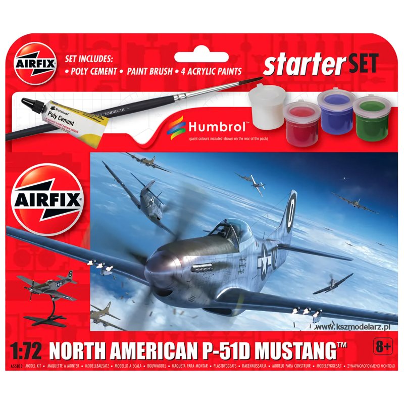 Airfix A55013 - zestaw modelarski z akcesoriami: North American P-51D Mustang + klej + 4 podstawowe farby + pędzelek