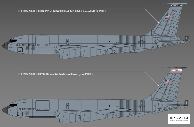 USAF KC-135R Stratotanker to wojskowy samolot-cysterna, używany przez Siły Powietrzne Stanów Zjednoczonych do tankowania innych samolotów w powietrzu, co znacząco wydłuża ich zasięg i czas operacyjny. Model KC-135R jest zmodernizowaną wersją tego samolotu, wyposażoną w nowe silniki i systemy, zapewniające lepszą wydajność.