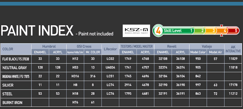- Wymiary modelu po sklejeniu: długość 294 mm, rozpiętość 275 mm, wysokość 98 mm