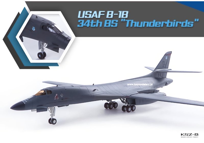 Rockwell B-1B Lancer to amerykański bombowiec strategiczny o zmiennej geometrii skrzydeł, opracowany przez firmę Rockwell dla USAF jako rozwinięcie projektu B-1A. Wszedł do służby operacyjnej w 1986 roku, oferując większy zasięg, ładowność i możliwości przetrwania niż wcześniejsze konstrukcje. Choć pierwotnie zaprojektowany do przenoszenia broni jądrowej, po zakończeniu zimnej wojny B-1B został przystosowany do misji konwencjonalnych. 34. Eskadra Bombowa „Thunderbirds” to jedna z jednostek, która eksploatuje B-1B i brała udział w licznych operacjach, m.in. w Iraku i Afganistanie. Samoloty tej eskadry regularnie uczestniczą również w ćwiczeniach międzynarodowych i pokazach siły USAF