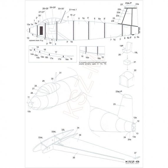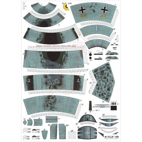- Wymiary modelu po sklejeniu: długość 24 cm, rozpiętość: 29 cm