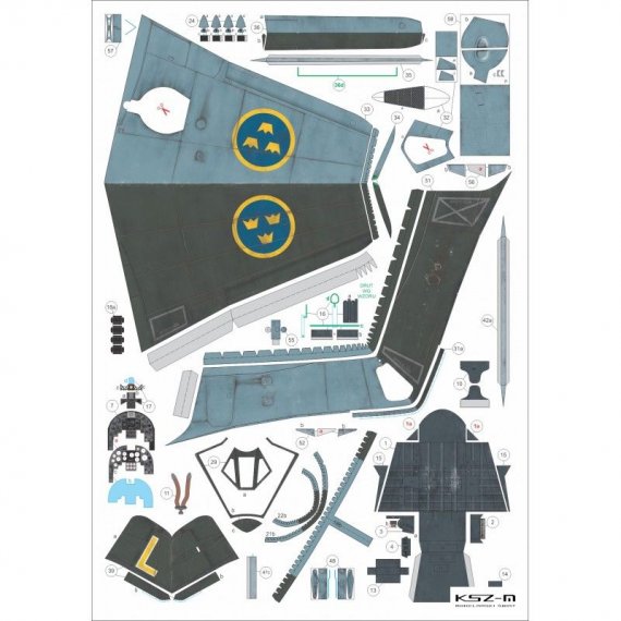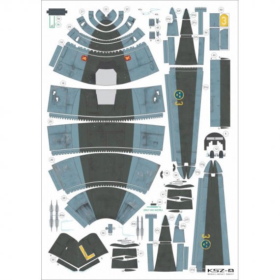 - Wymiary modelu po sklejeniu: długość 28 cm, rozpiętość 35 cm