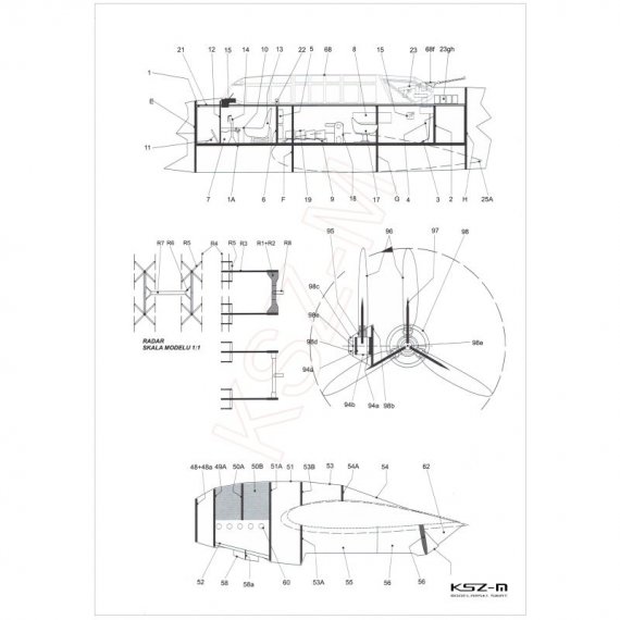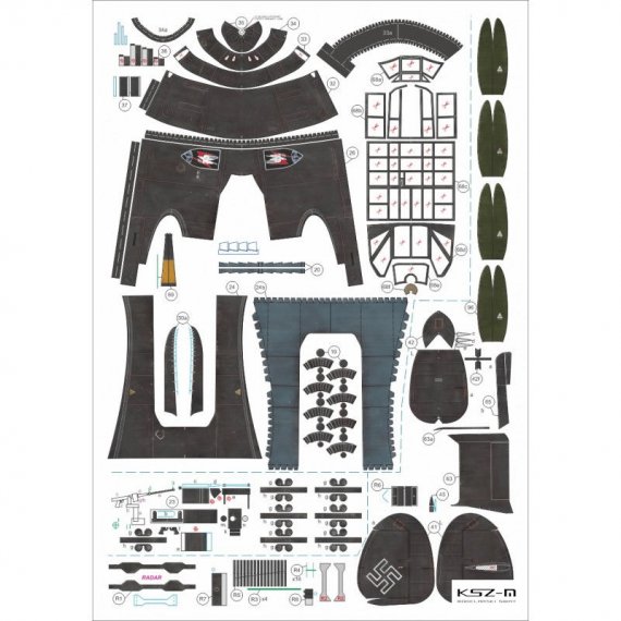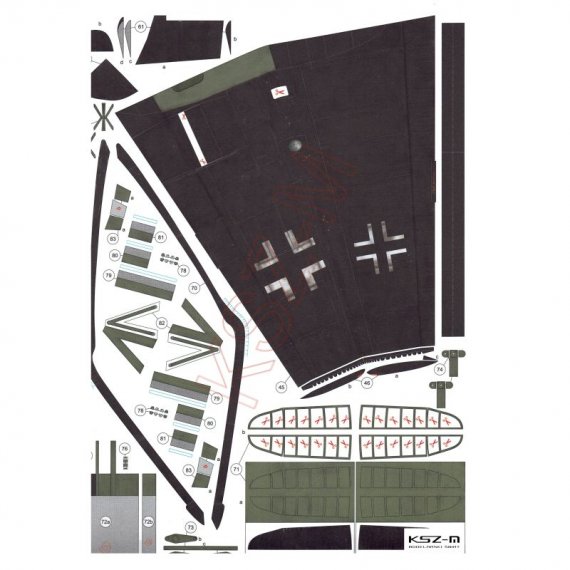 - Wymiary modelu po sklejeniu: długość 38,5 cm, rozpiętość 49 cm