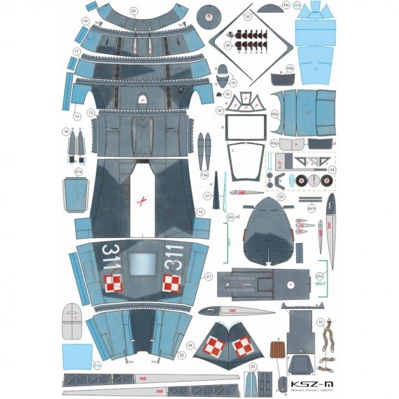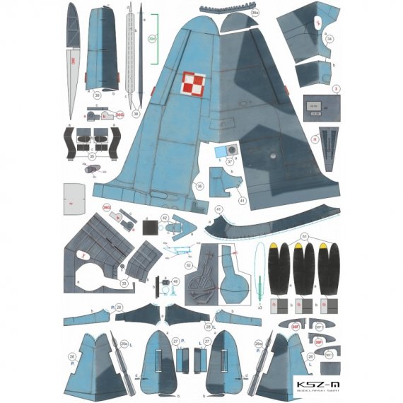 - Wymiary modelu po sklejeniu: długość 26 cm, rozpiętość 29,6 cm