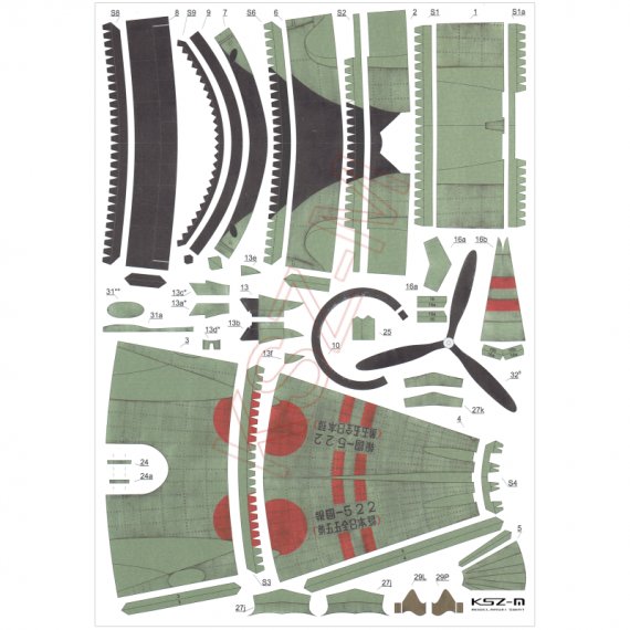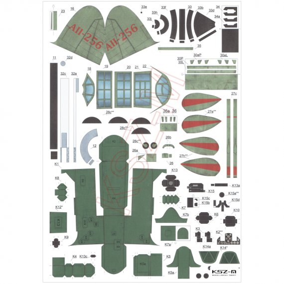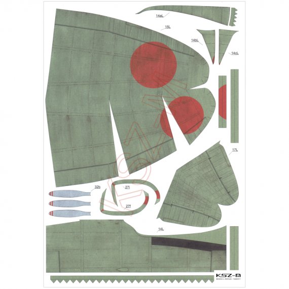 - Wymiary modelu po sklejeniu: długość 31 cm, rozpiętość 44 cm