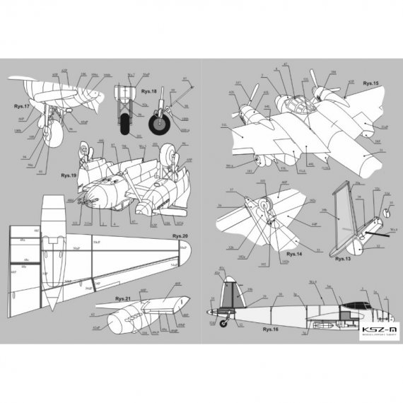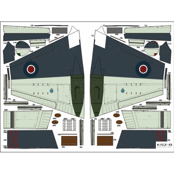 - Wymiary modelu po sklejeniu: rozpiętość 50,03 mm, długość 37,69 cm, wysokość 14,09 cm