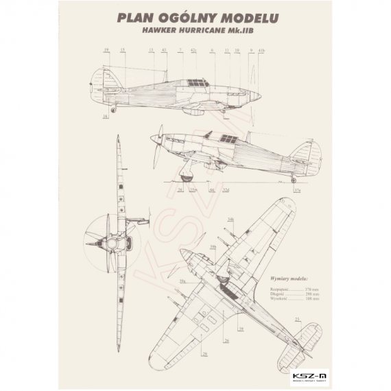 - wymiary modelu: długość 298 mm, rozpiętość 370 mm, wysokość 108 mm