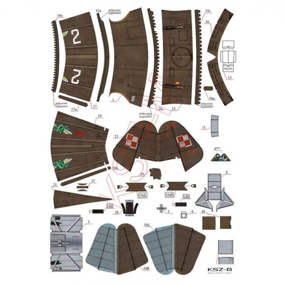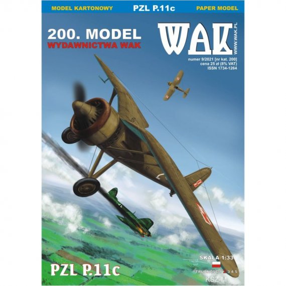 Polski samolot myśliwski PZL P.11c z II Wojny Światowej. Do wyboru dwa malowania ze 112. Eskadry Myśliwskiej. Model prosty, przeznaczony także dla początkujących modelarzy.