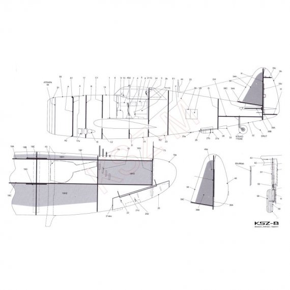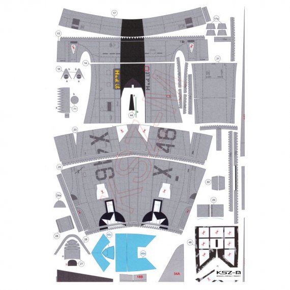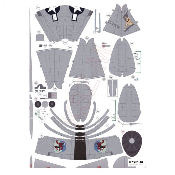 - Wymiary modelu po sklejeniu: długość 33 cm, rozpiętość 37,5 cm
