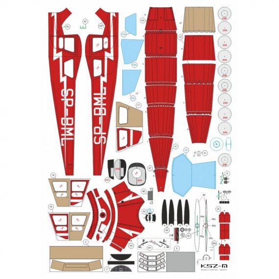 - Wymiary modelu po sklejeniu: rozpiętość 35 cm, długość 24 cm