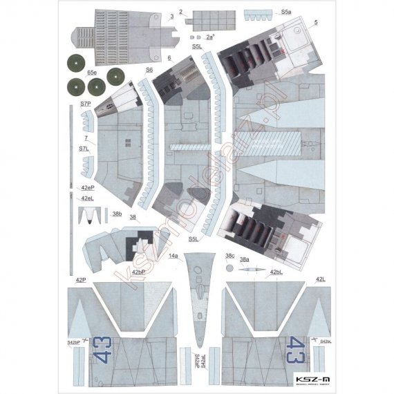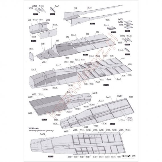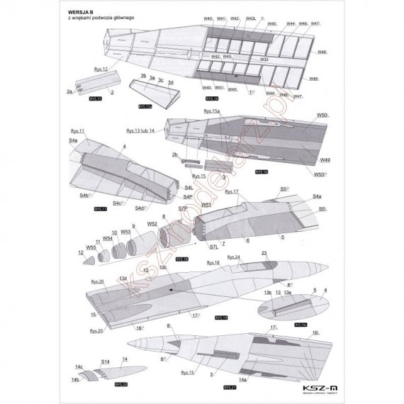 - Wymiary modelu po sklejeniu: długość 53 cm, rozpiętość 35 cm