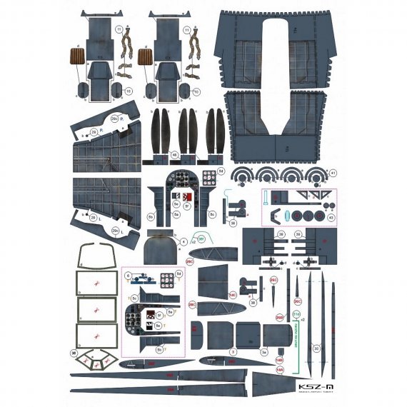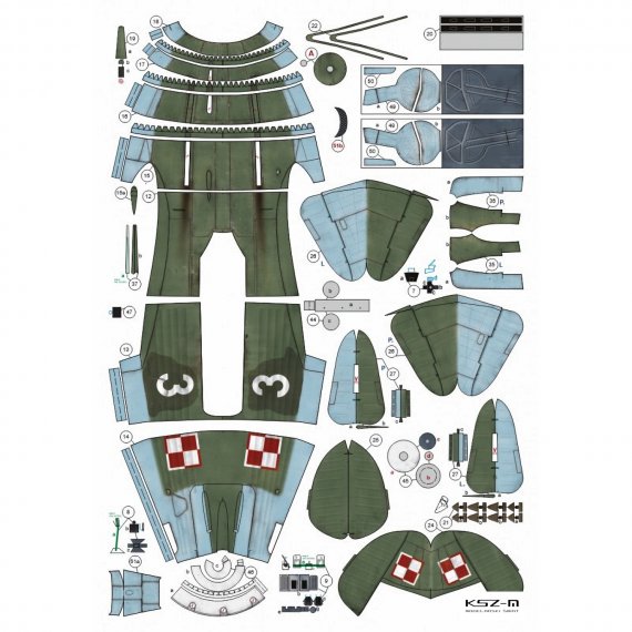 - Wymiary modelu po sklejeniu: długość 26 cm, rozpiętość 29,5 cm