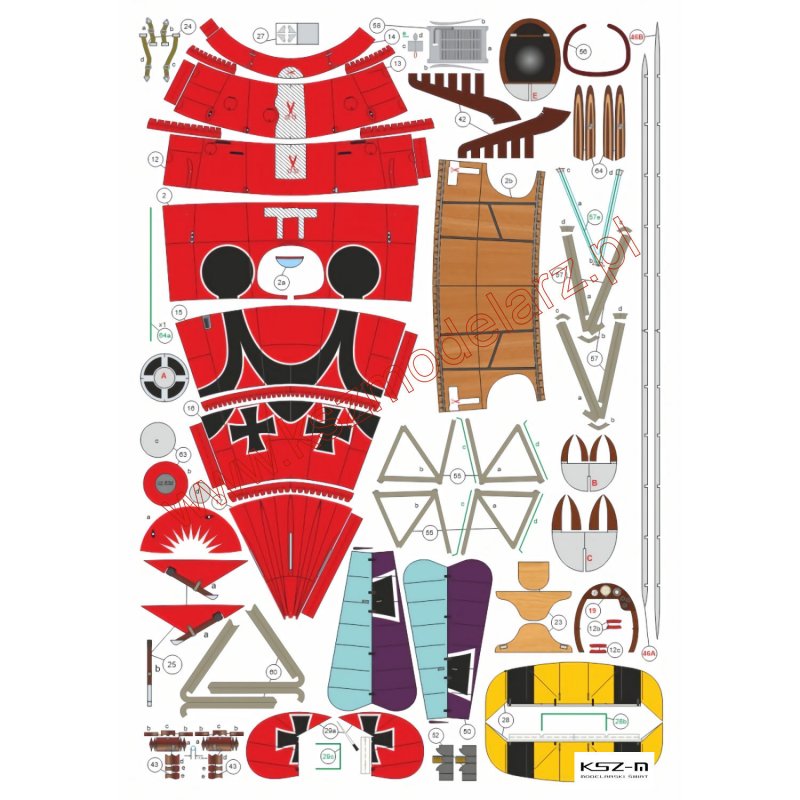 - Wymiary modelu po sklejeniu: rozpiętość 28 cm, długość 22 cm
